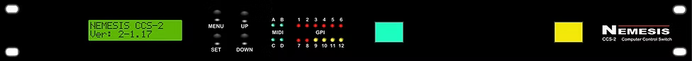 The Nemesis CCS-2, with its multitude of in/out options, allows two computer systems - most commonly a "MAIN" and a "BACKUP" to share a keyboard, mouse and monitor as well as share distribution of GPI data and MIDI messages. The Nemesis CCS-2 can be easily remote controlled via closed contact from a control surface allowing the user to have full triggering control from any console.